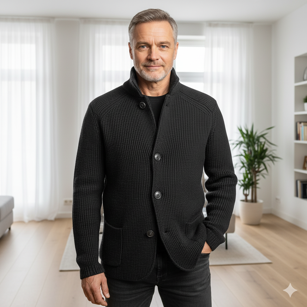 Silts un elastīgs adījums nodrošina komfortu un kustību brīvību. Pogas priekšpusē ļauj viegli pielāgot siltumu. Ideāli piemērots darbam vai vakara iziešanai.