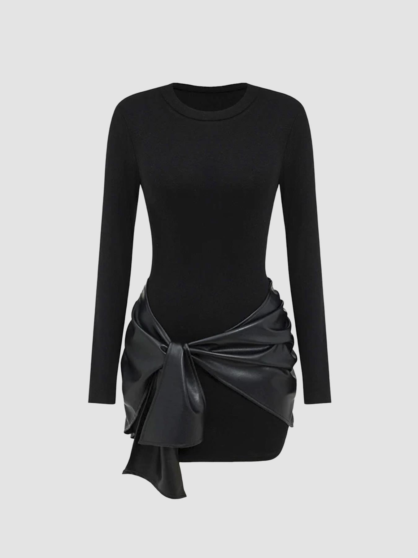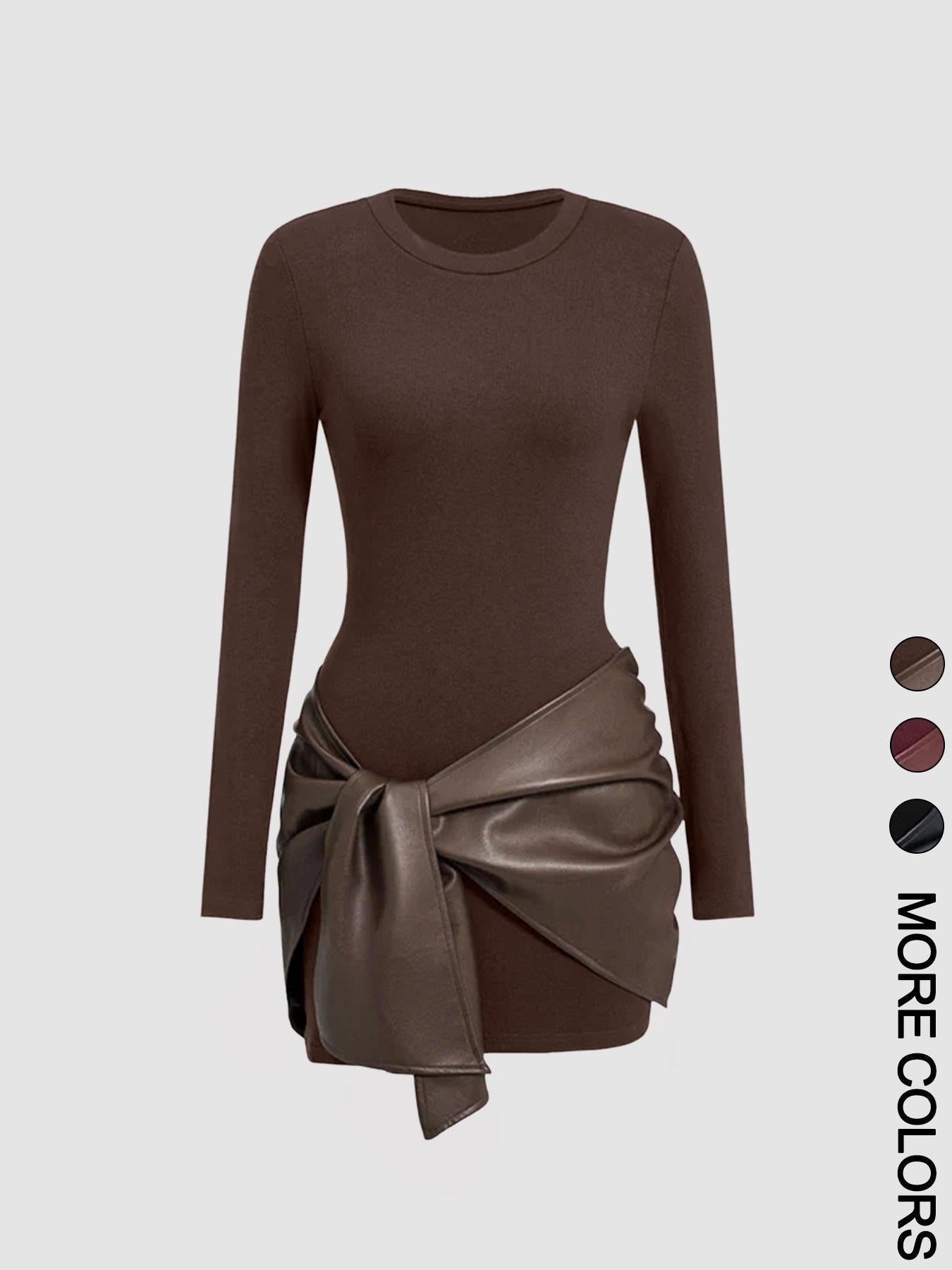 Eleganta Bordo Mini Kleita ar Ādas Efekta Jostu