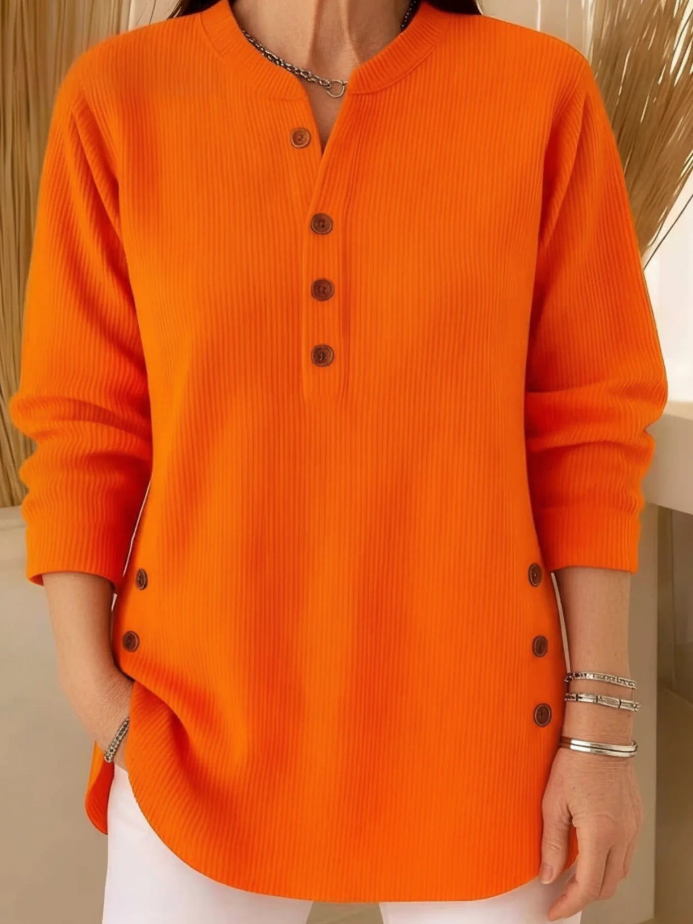 Ērta un sievišķīga rievota tunika ar dekoratīvām pogām priekšpusē un sānos. Mīksts, elastīgs audums nodrošina komfortu visas dienas garumā, bet pagarinātais piegriezums piešķir gaumīgu, brīvi krītošu siluetu. Ideāli piemērota ikdienai, darbam vai atpūtai.