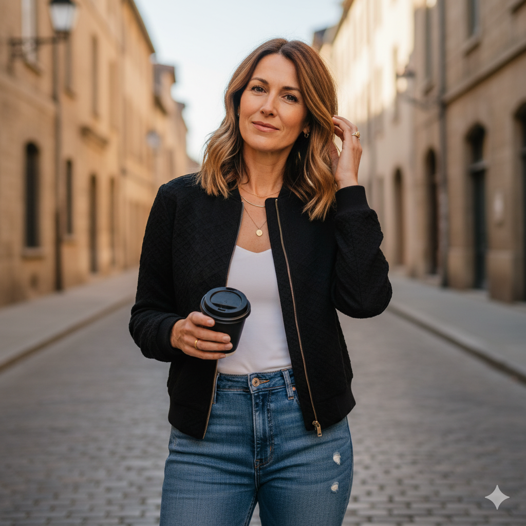 Vieglā un mīkstā jaka ar rāvējslēdzēju nodrošina komfortu un kustību brīvību. Ideāli piemērota pavasarim un ikdienas valkāšanai pilsētā.