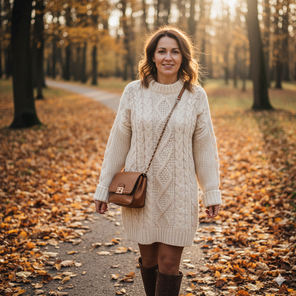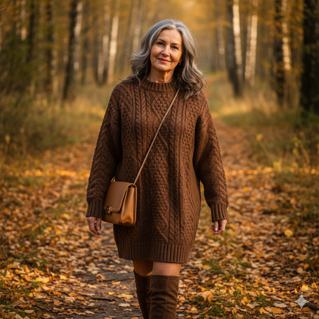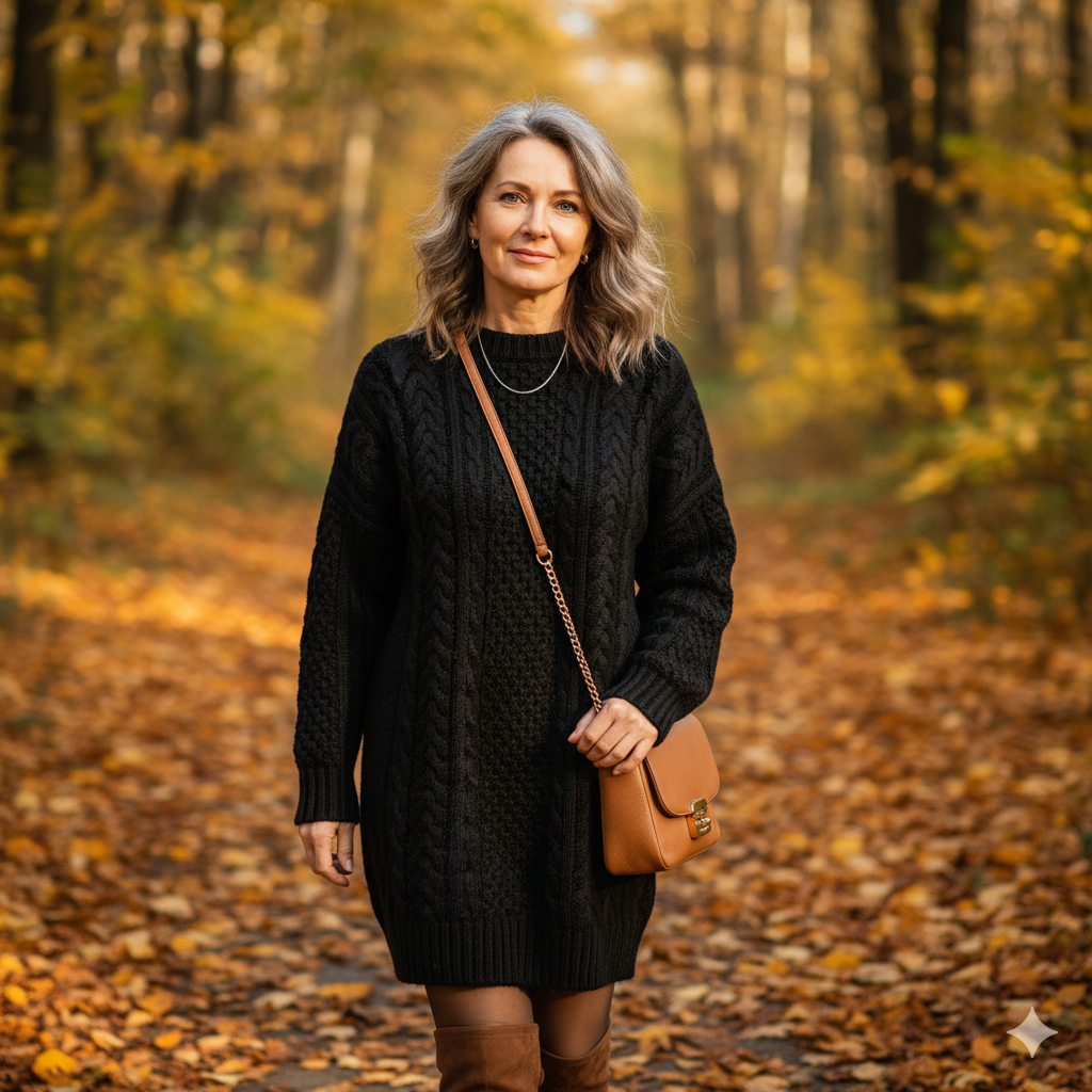 Silta un mīksta adīta kleita nodrošina komfortu vēsākās dienās. Elastīgs audums un brīvs piegriezums ļauj to valkāt gan ikdienā, gan brīvdienās.